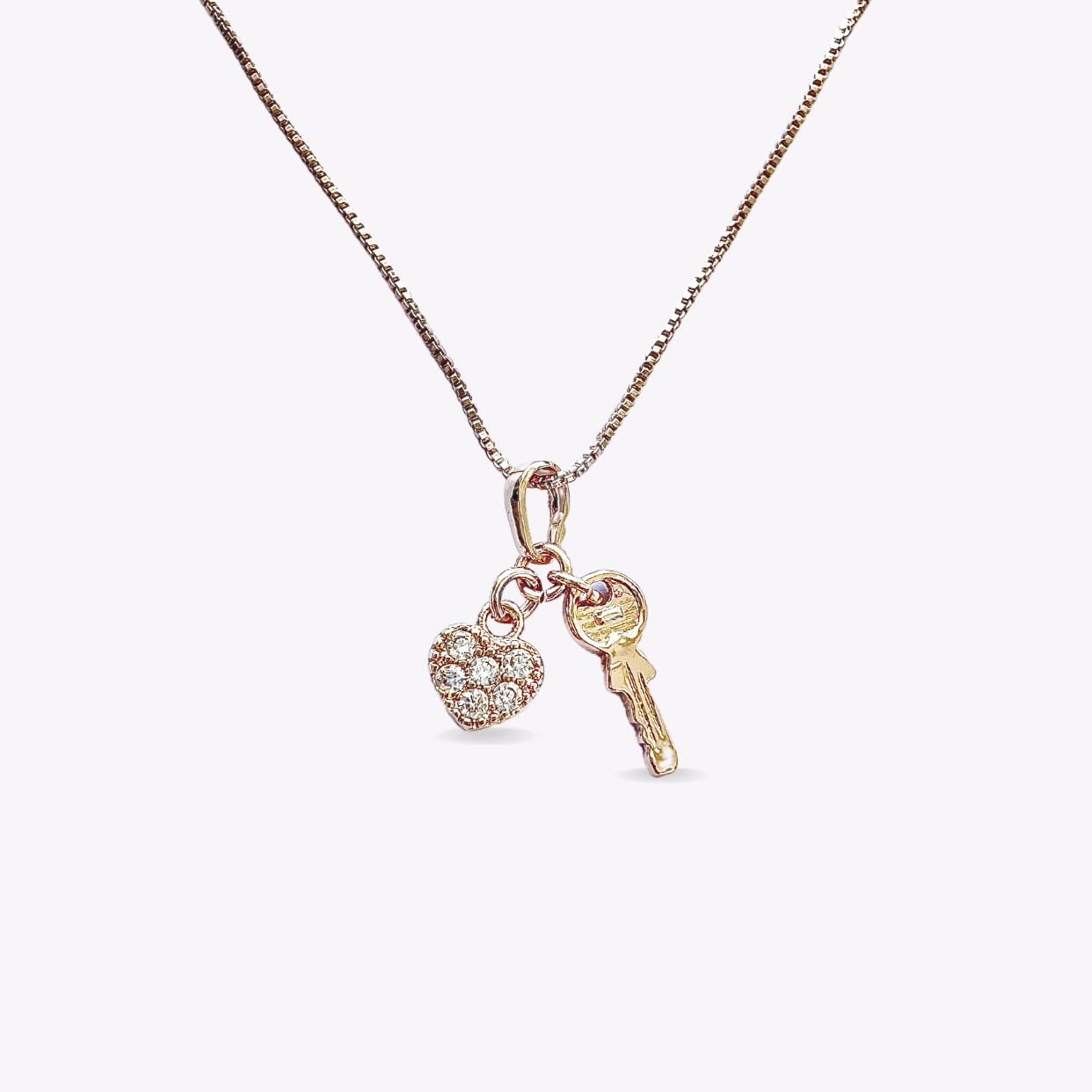 - Dimensions: Key Pendant 1 cm Height, Heart Pendant 1.3cm Height, 45cm Chain